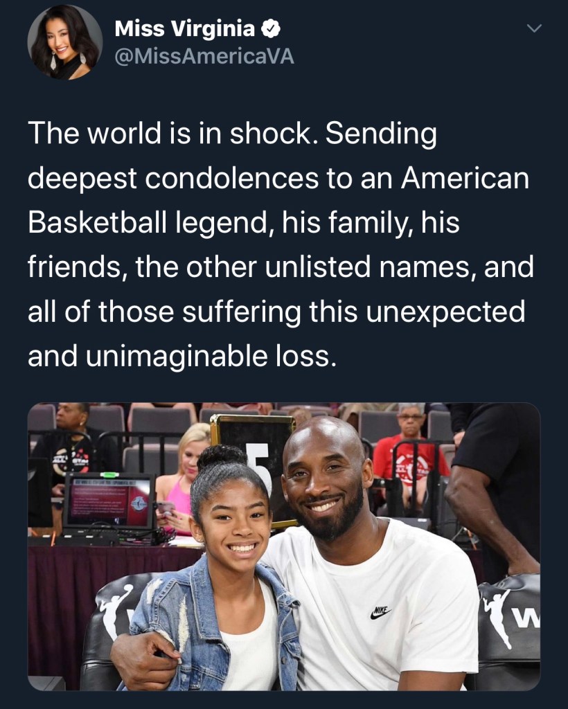 Remember, you are more than what you do (being an amazing titleholder), it’s who you are in Kobe’s famous words. As a pageant family, let’s look to Kobe’s legacy and continue to push the definition of excellence in our communities, our industry and on stage.